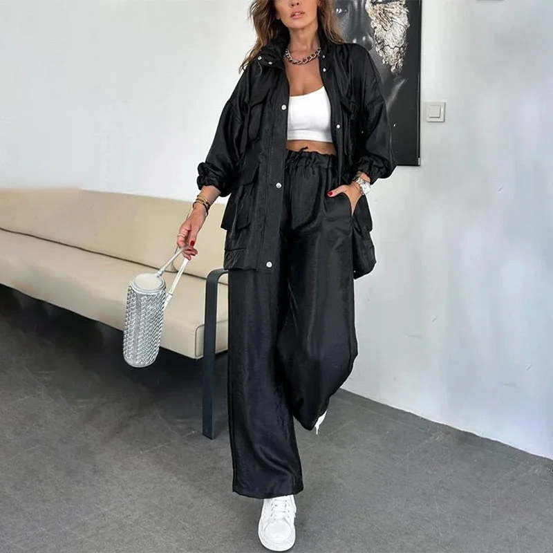 SLEEK SHINY FINISH: A subtle yet eye-catching sheen enhances the fabric, giving the set a modern, fashion-forward look.